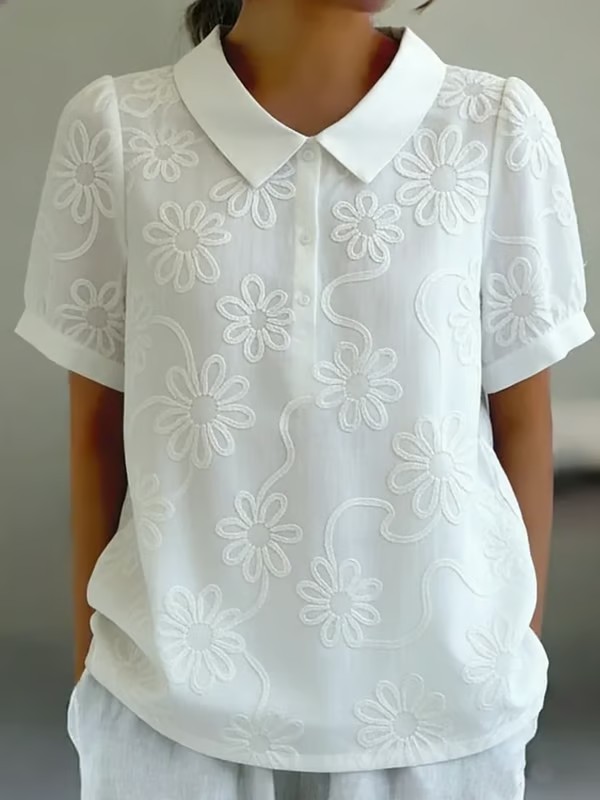 Women's Vintage Romantic Floral Embroidered Cutout Design Blouse Shirt