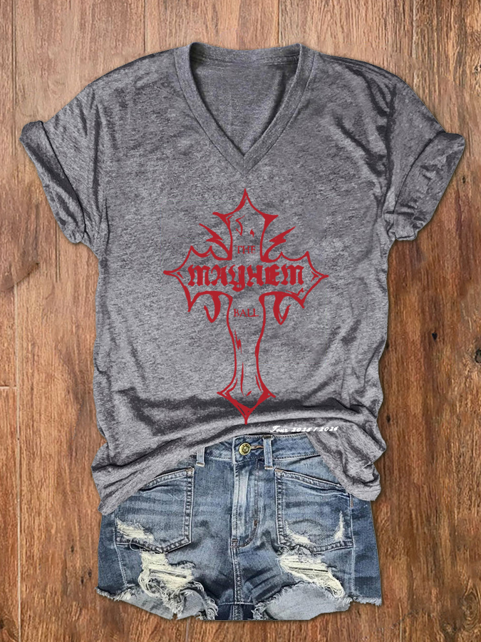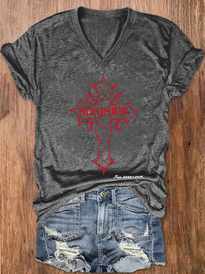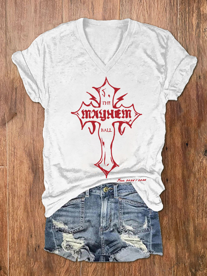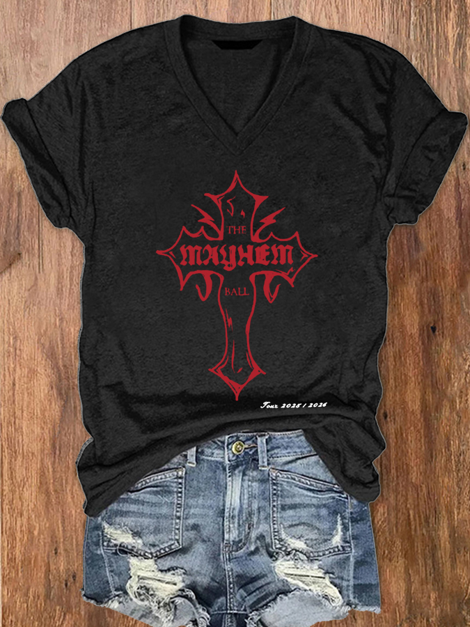 Women's The MAYHEM Ball Tour Printed V-neck T-Shirt