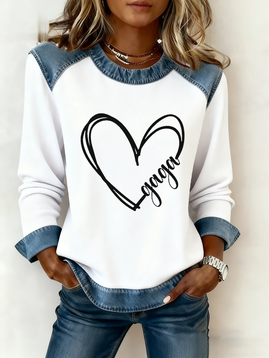 Women's The MAYHEM Ball Tour Printed Denim Patchwork Sweatshirt