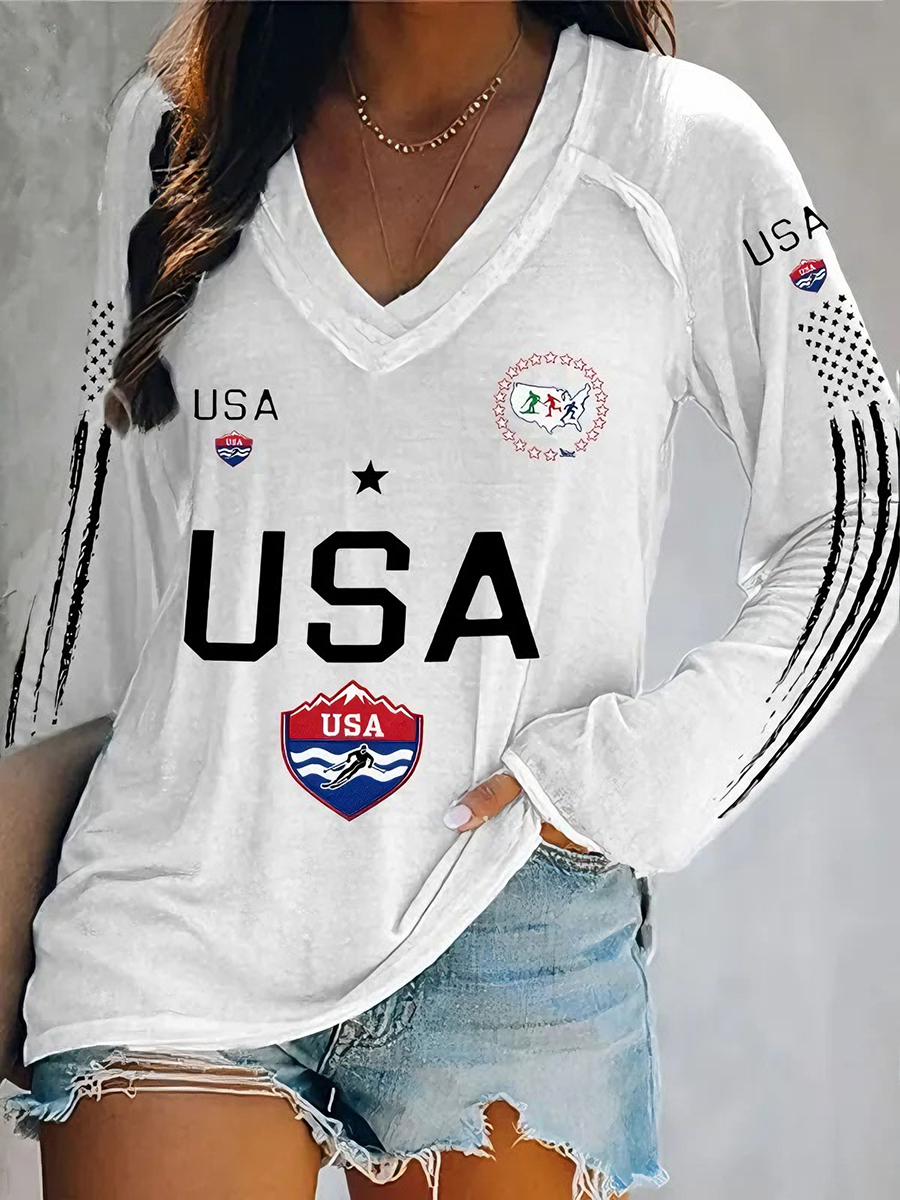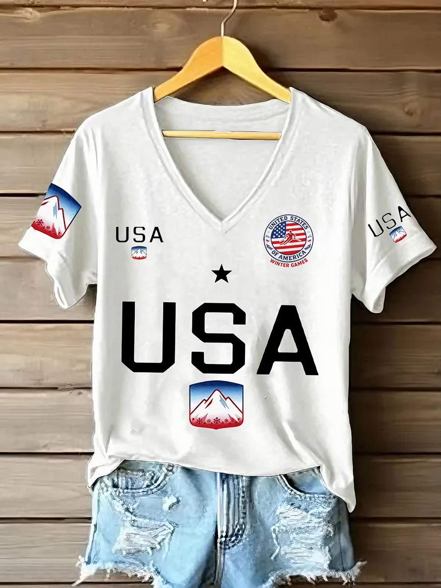 Women's USA Winter Sports 2026 V-Neck T-Shirt