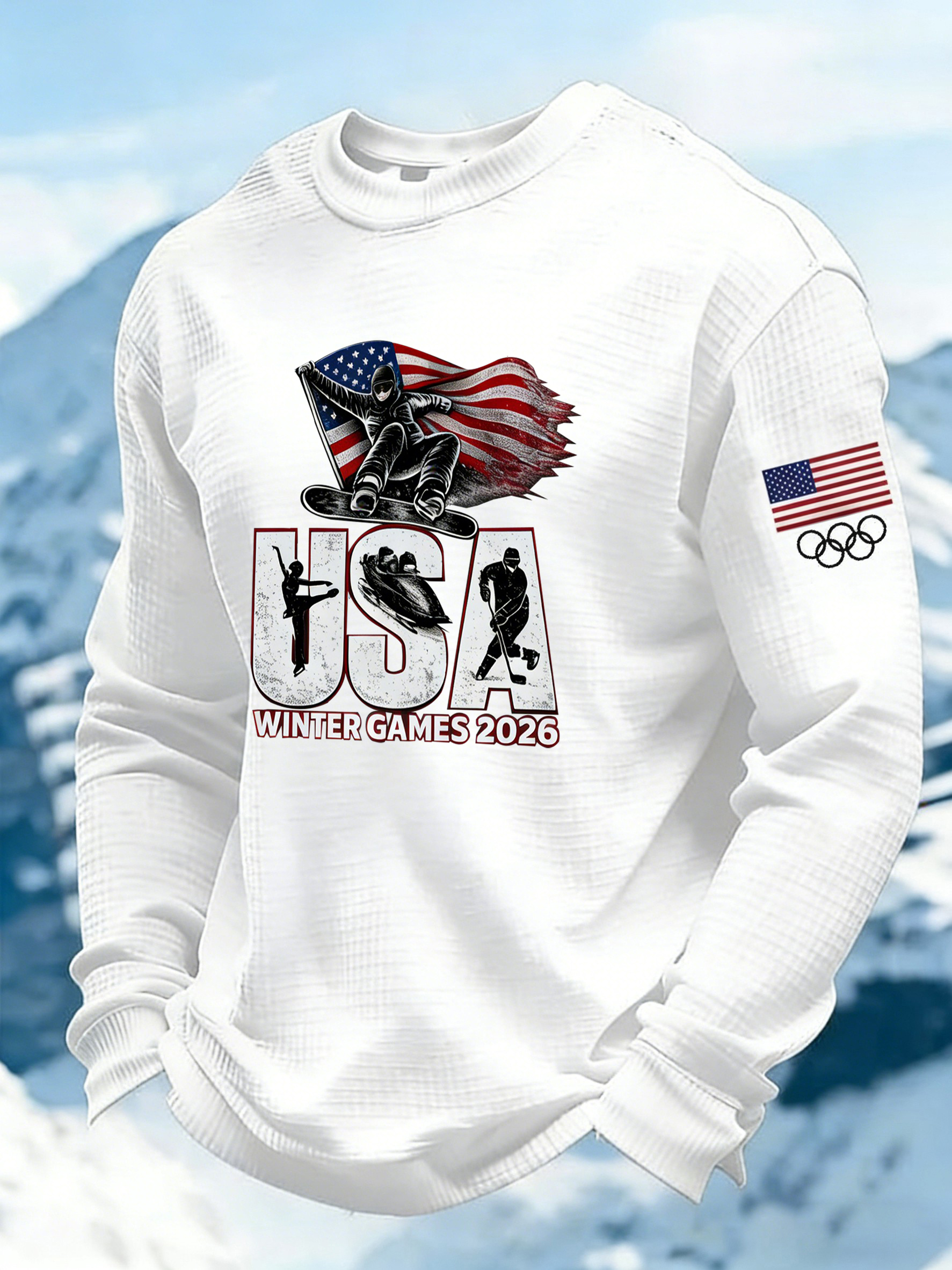 Men's USA Winter Sports 2026 Print Waffle Long Sleeve Sweatshirt