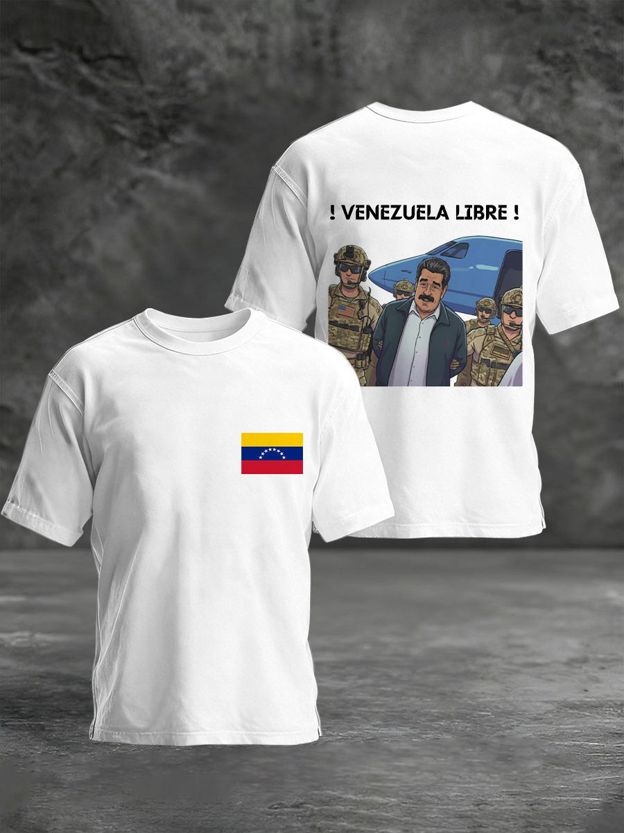 Men's Venezuela Libre Print imitation cotton short-sleeved T-shirt