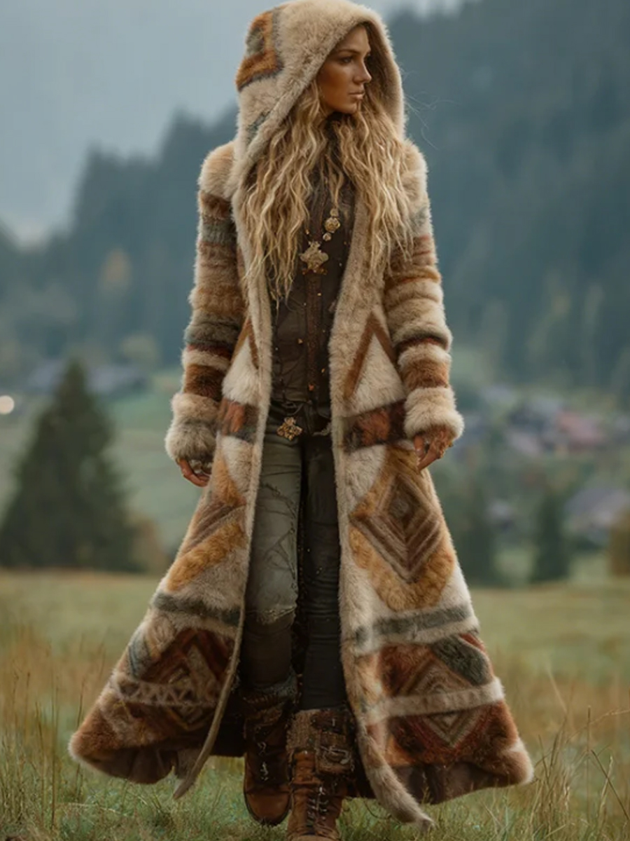 Women's Vintage Western Aztec Patchwork Hooded Zipper Hoodie