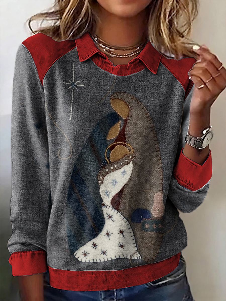 Women's Christmas Pattern Patchwork Art Sweatshirt